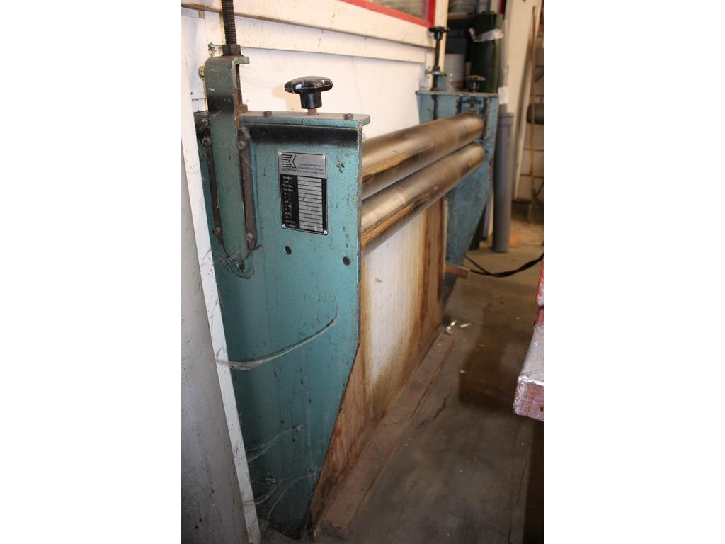 Metaalrol-afrolunit KADER GESKA 4 met restantrol plaatmateriaal, werktafel en schaar JORG. Capaciteit 1000 x 1,5 mm. 380 V.