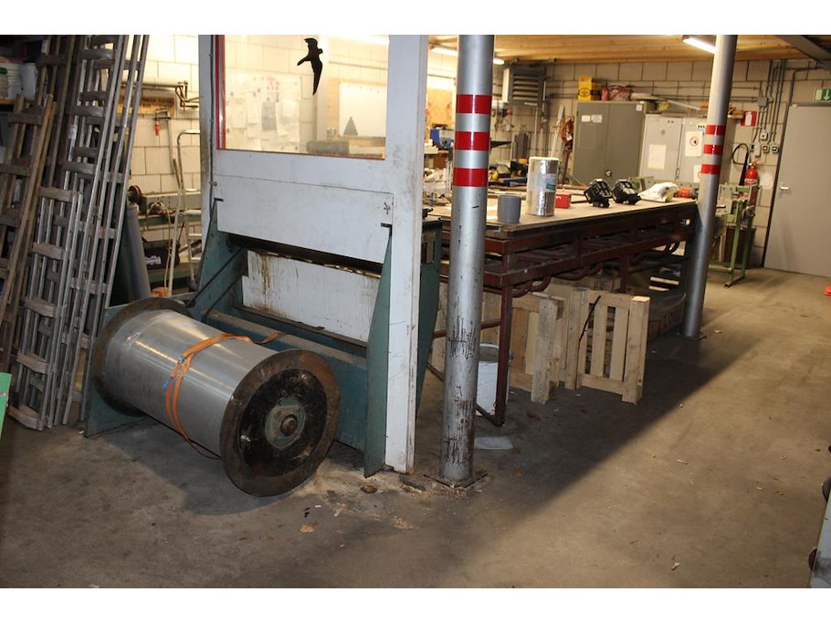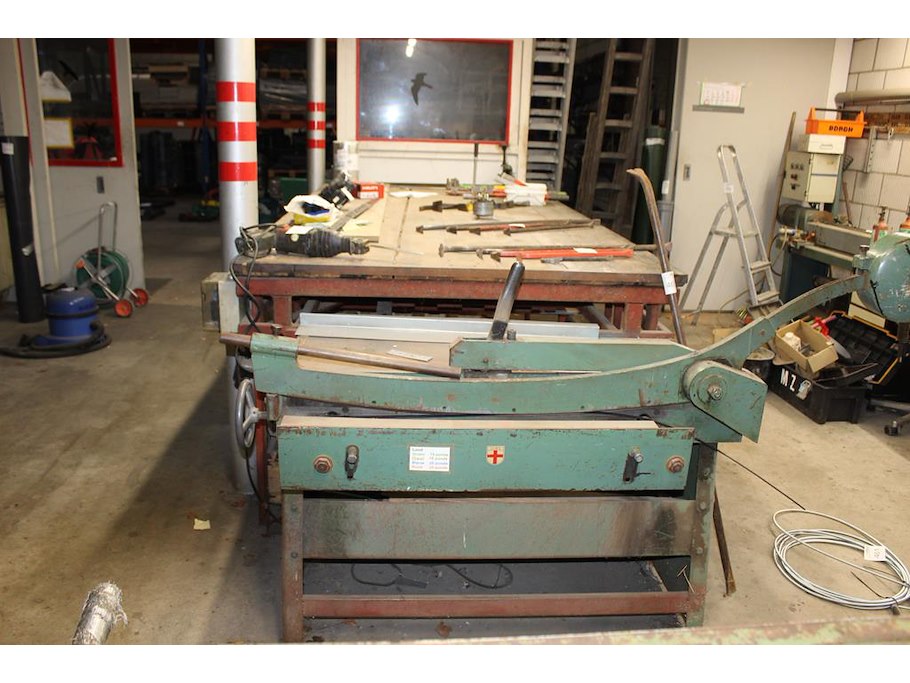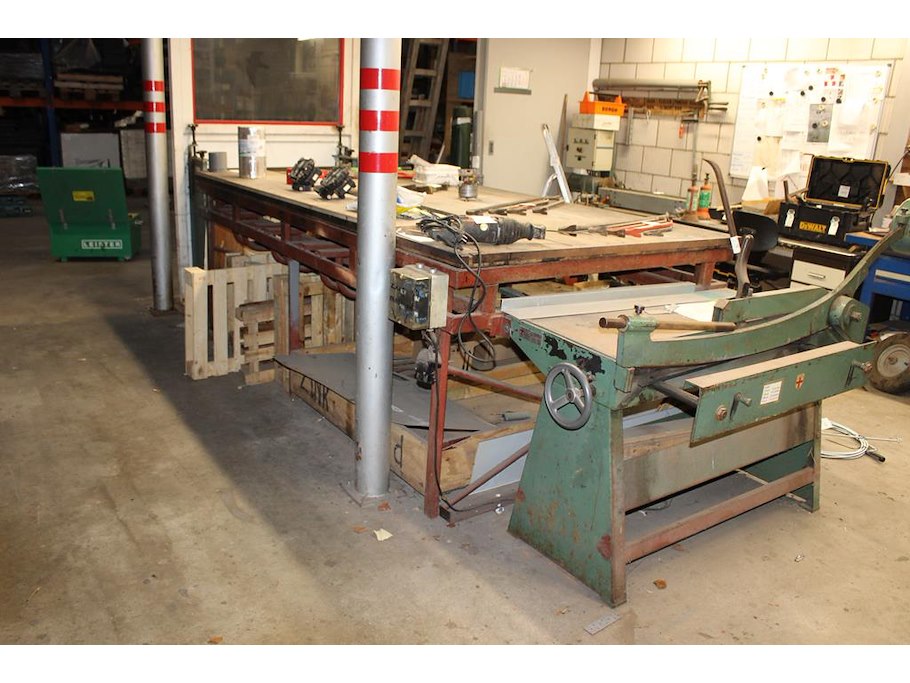 Metaalrol-afrolunit kader geska 4 met restantrol plaatmateriaal, werktafel en schaar jorg. capaciteit 1000 ...