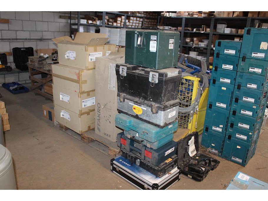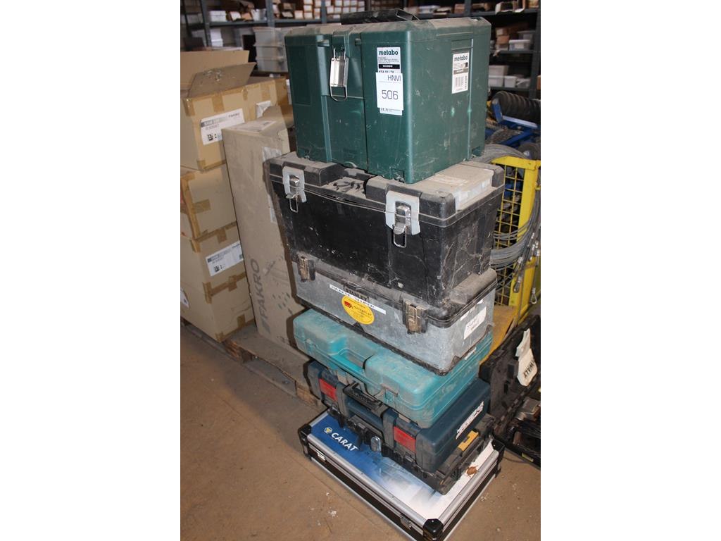 Acht diverse gereedschapskisten leeg.