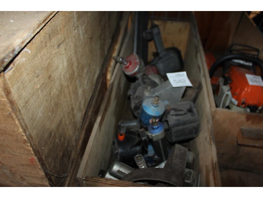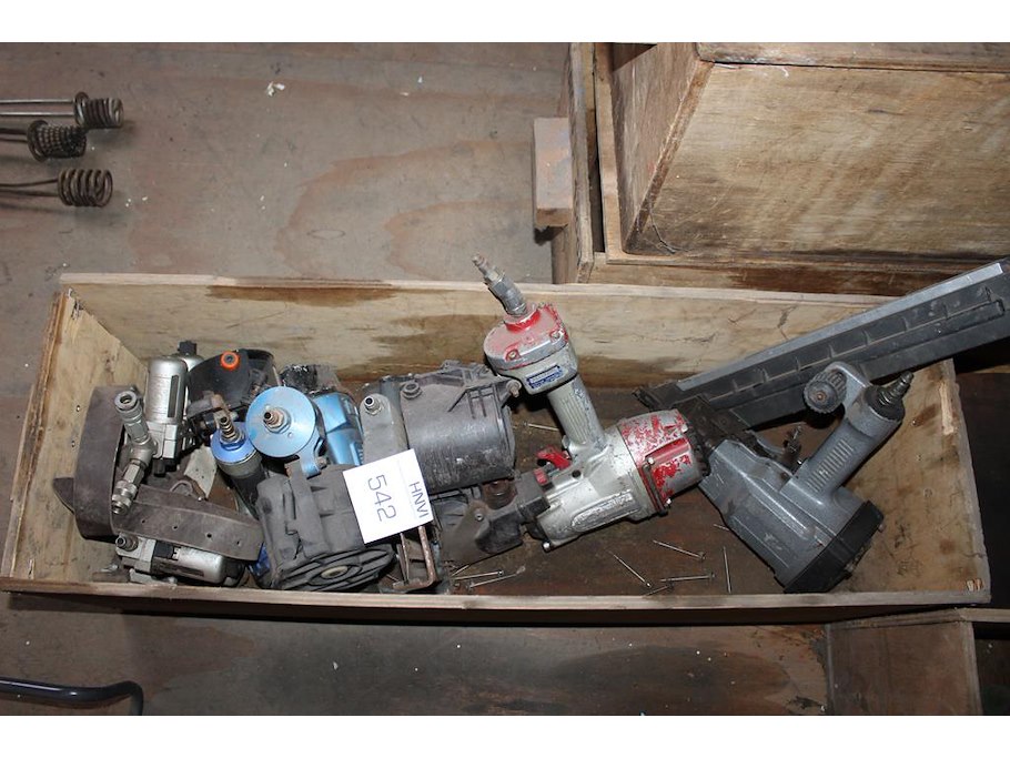 Luchtgereedschappen in houten bak w.o. 5 tackers.