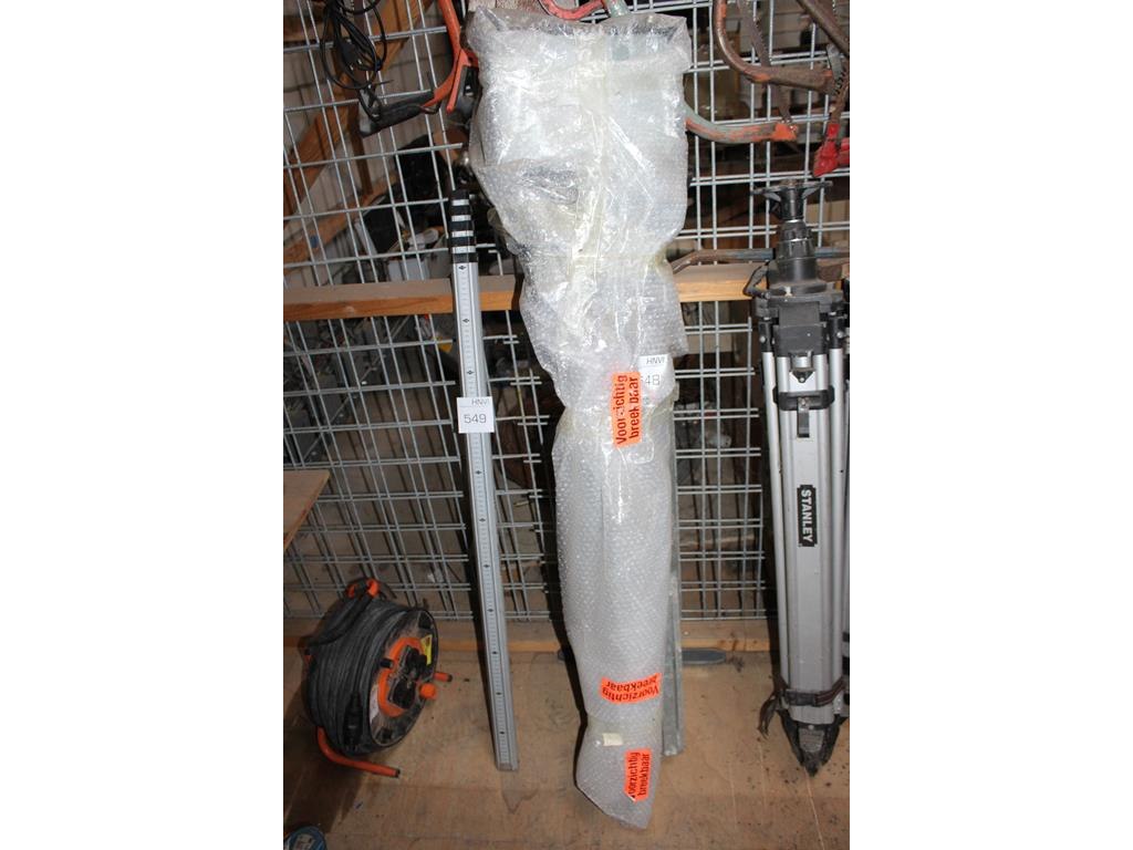 Twee bouwlamp-statieven w.v. 1 met bouwlamp.