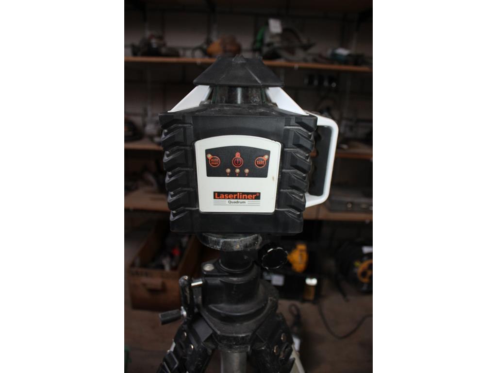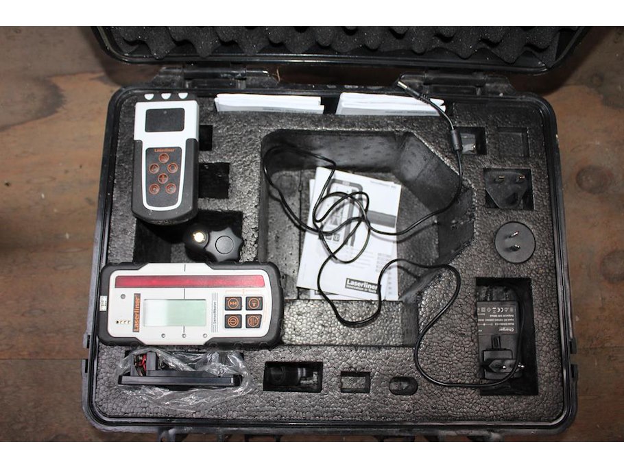 Roterende laser laserliner quadron met statief, ontvanger en afstandsbediening in flightcase.