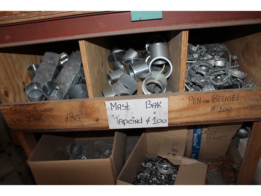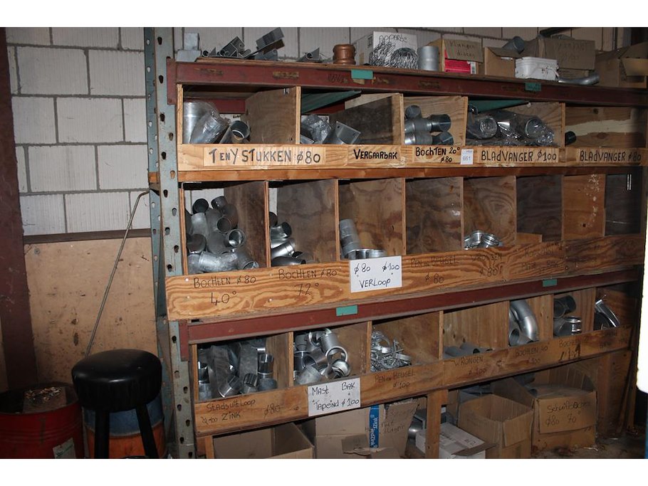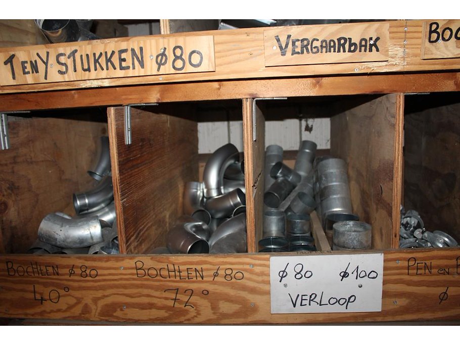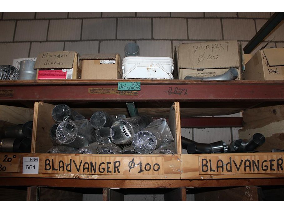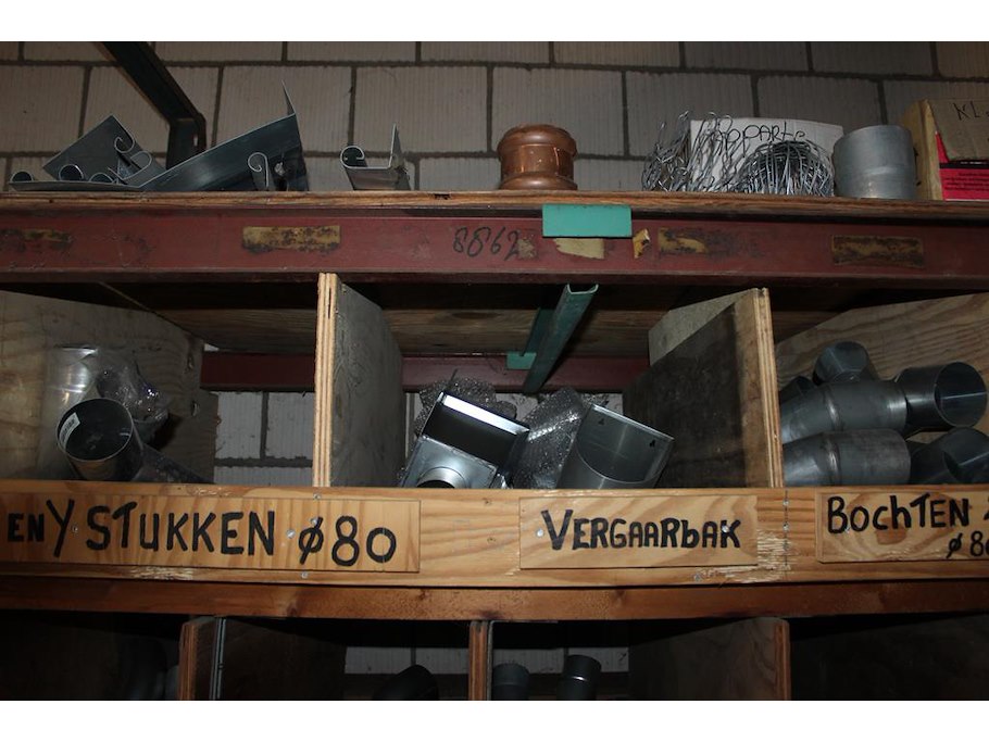 Regenwaterafvoer producten in kast w.o. wrongen, bladvangers, tapbuizen, bochten, pen en beugels en stadsui...