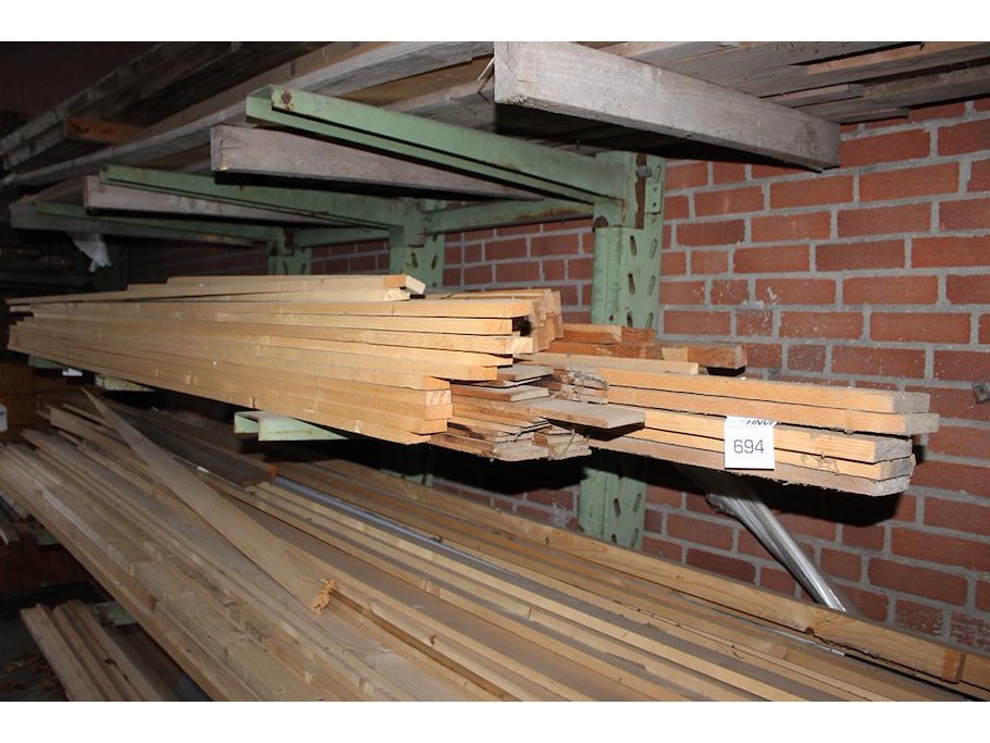 Vuren houten latten en balkjes w.o. 50x20mm en 45x35mm op schap.