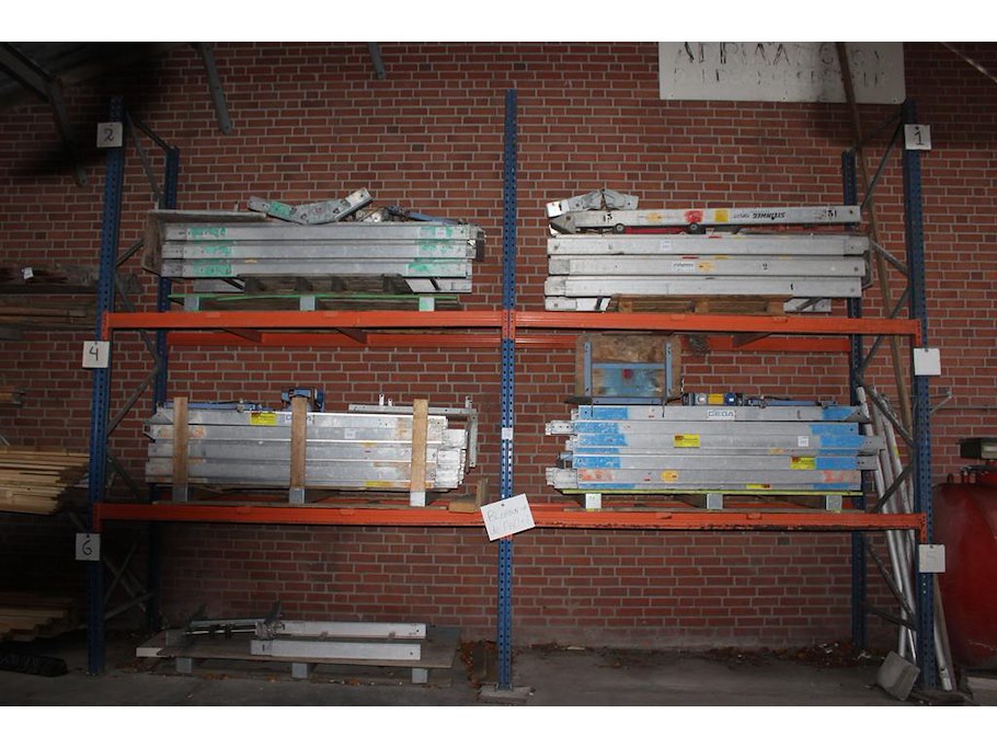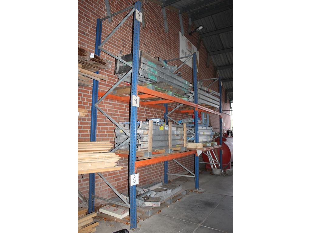 Palletstelling bestaande uit 3 staanders met hoogte 400 cm en 8 liggers met lengte 270 cm. let op: ophalen ...