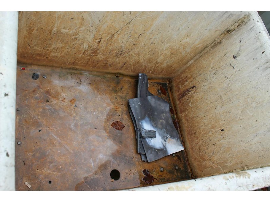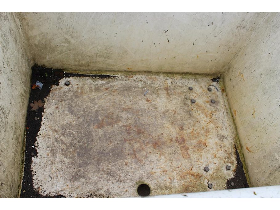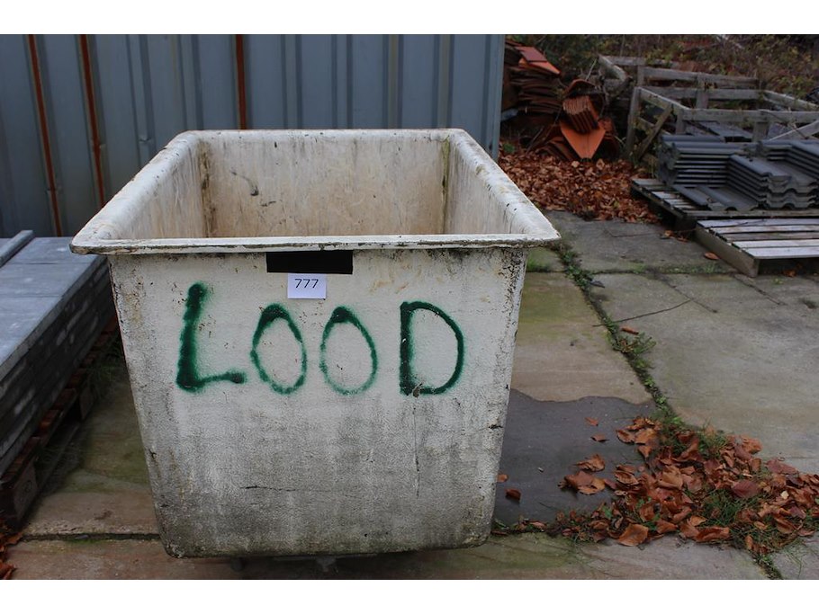 Twee semi-verrijdbare transportbakken. Afmeting 122 x 89 x 92 cm.