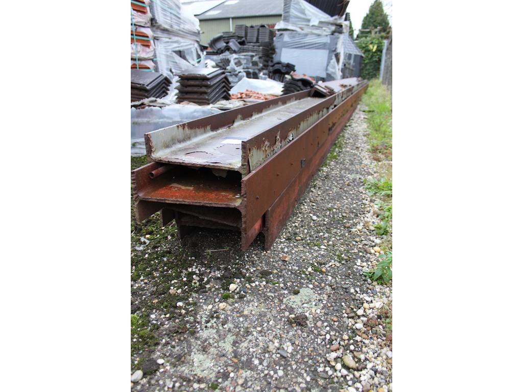 Drie I-balken 330 x 160 mm. 12 mm dik en Lengte 11 meter. Let op: inclusief de 3 L-profielen.