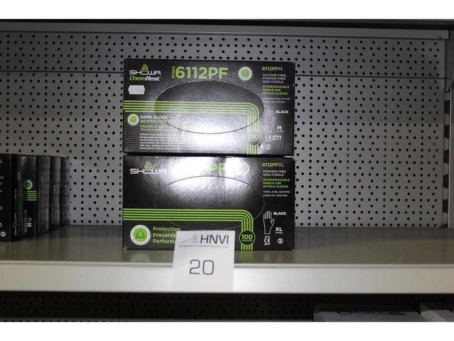 Tien dozen SHOWA handschoenen zwart type 6112PF. 9 dozen maat XL en 1 doos maat M