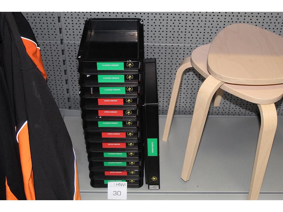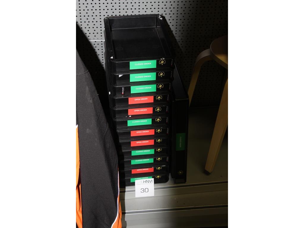 13 opslagbakjes waarvan klein 12 stuks afm. 20 x 30 cm en1 groot afm. 30 x 40 cm