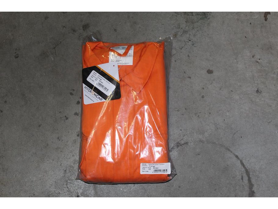 Hydrowear overall oranje zes stuks waaronder maat 58 één stuk, maat 60 drie stuks en maat 62 twee stuks