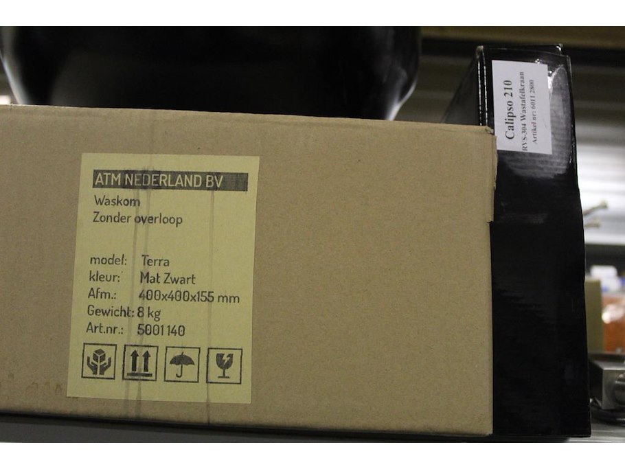 Waskom atm nederland zwart type terra afm. 400 x 400 x 155 mm met wastafelkraan type calipso 210