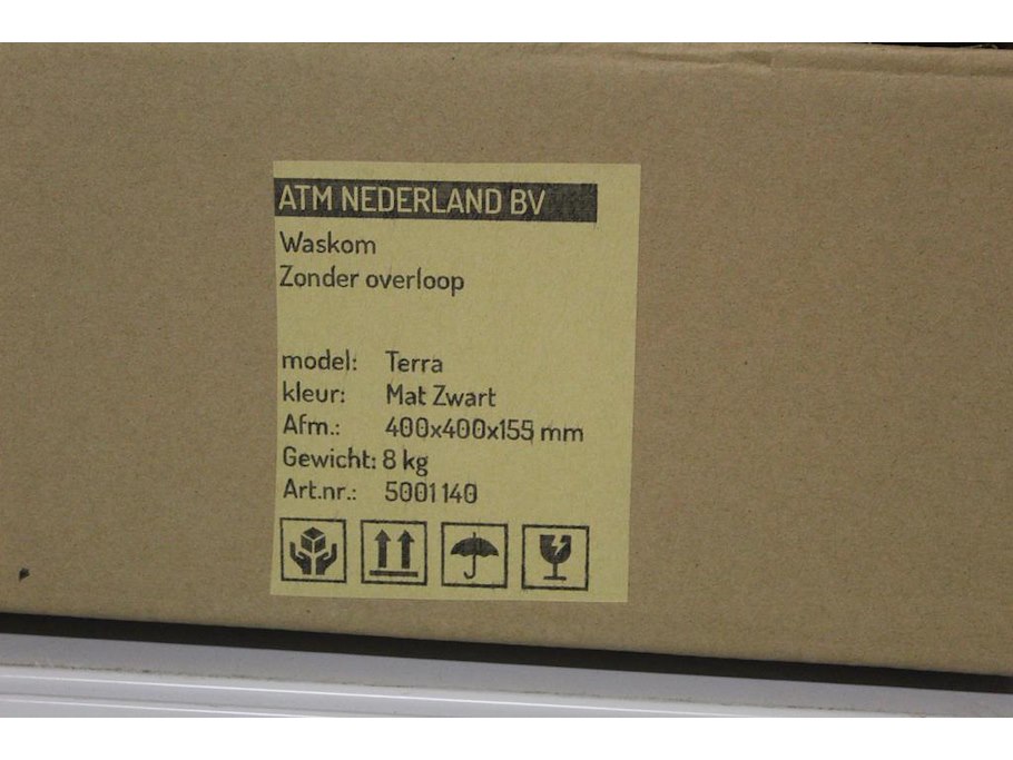 Waskom ATM NEDERLAND zwart type TERRA afm. 400 x 400 x 155 mm met wastafelkraan type MOZA 71