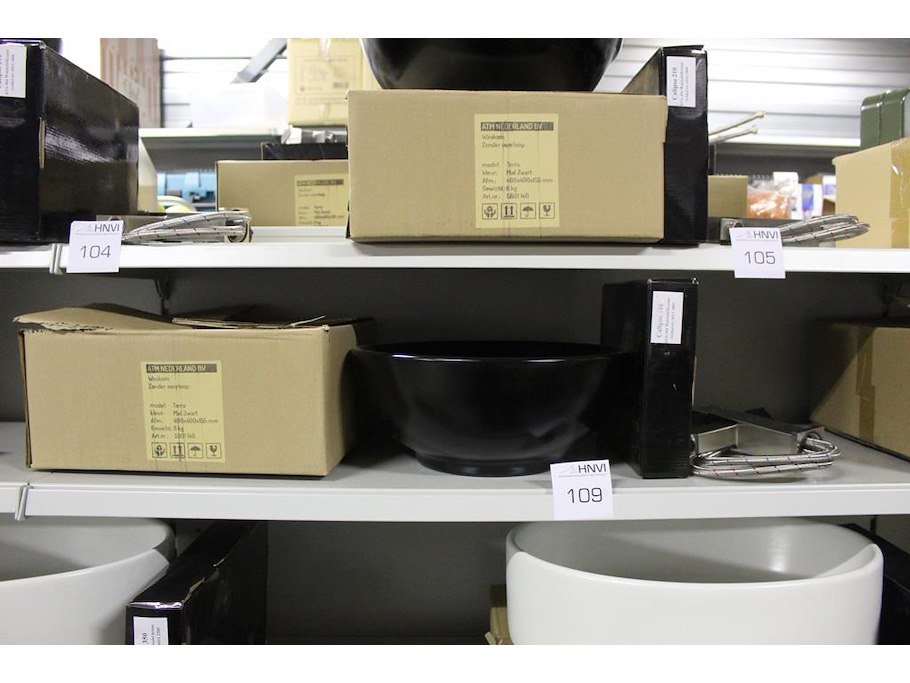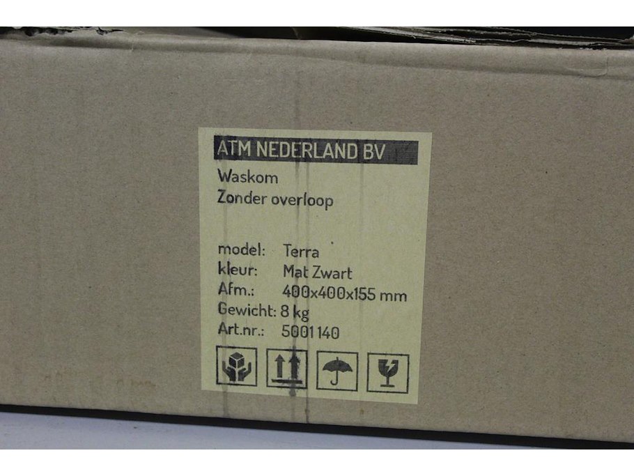 Waskom atm nederland zwart type terra afm. 400 x 400 x 155 mm met wastafelkraan type calipso 210