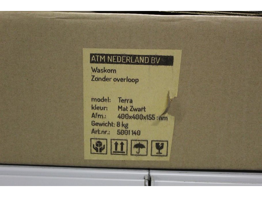Waskom ATM NEDERLAND zwart type TERRA afm. 400 x 400 x 155 mm met wastafelkraan type CALIPSO 210