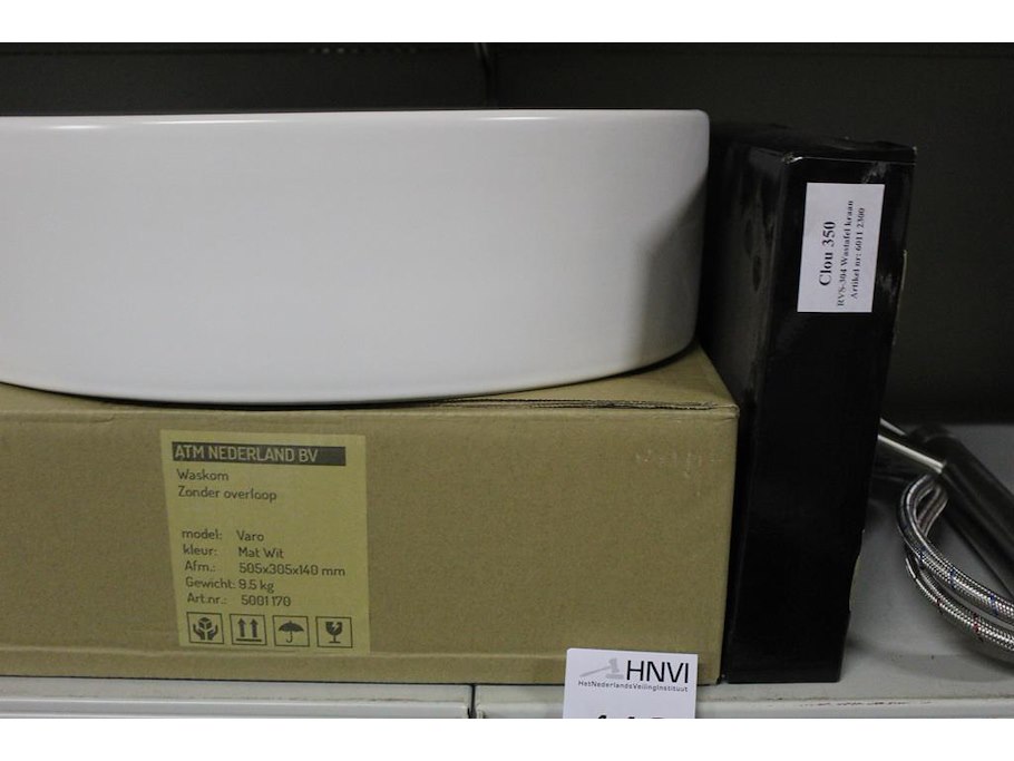 Waskom ATM NEDERLAND wit type VARO afm. 505 x 305 x 140 mm met wastafelkraan type CLOU 350