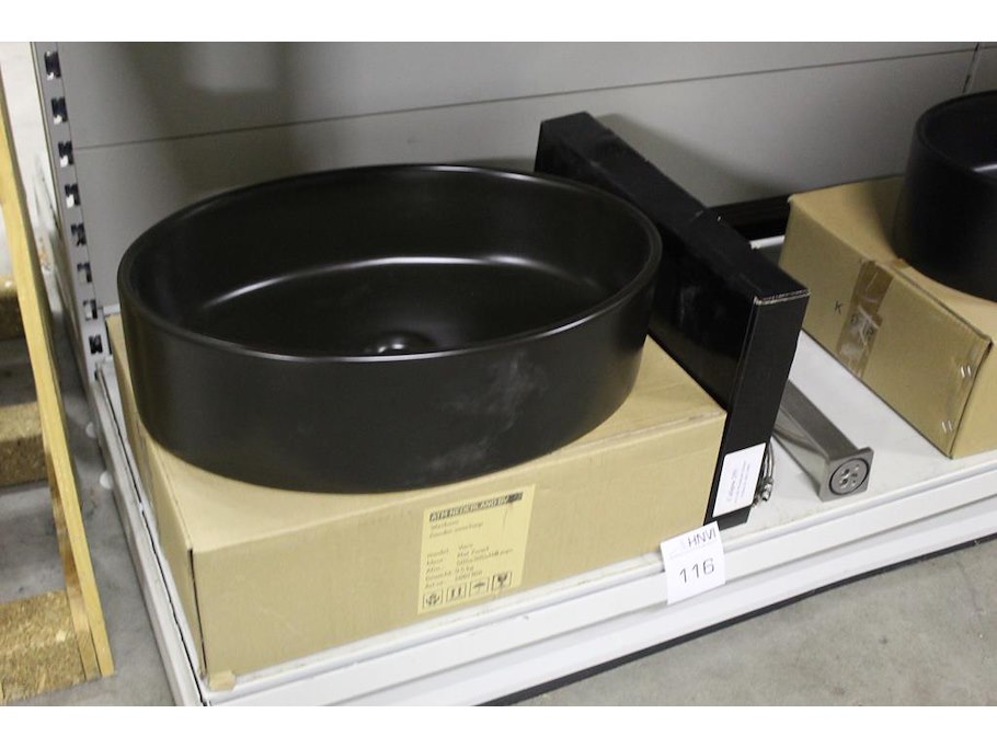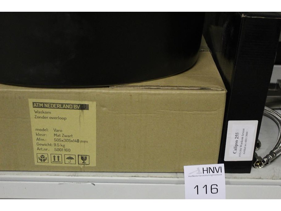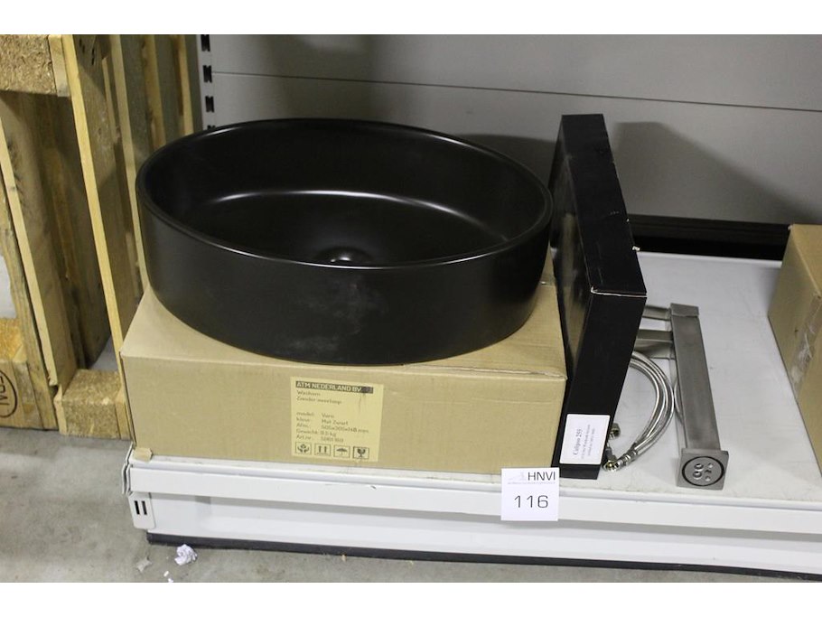 Waskom ATM NEDERLAND zwart type VARO afm. 505 x 305 x 140 mm met wastafelkraan type CLOU 255