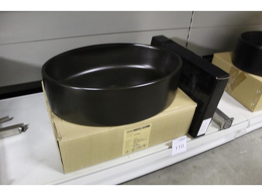 Waskom ATM NEDERLAND zwart type VARO afm. 505 x 305 x 140 mm met wastafelkraan type CLOU 255