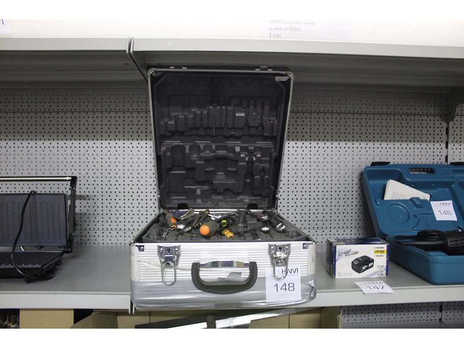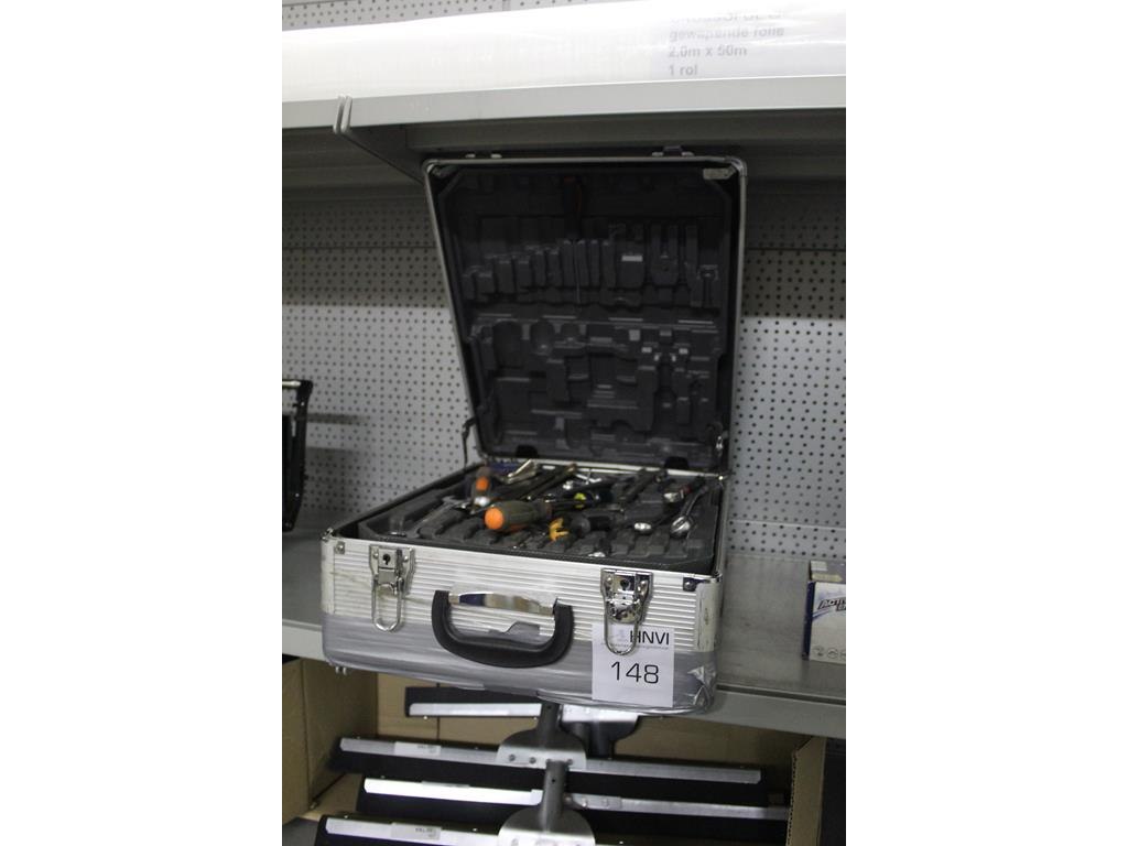 Gereedschapskoffer met inhoud w.o. waaronder schroevendraaiers, sleutels, doppen met ratel etc.