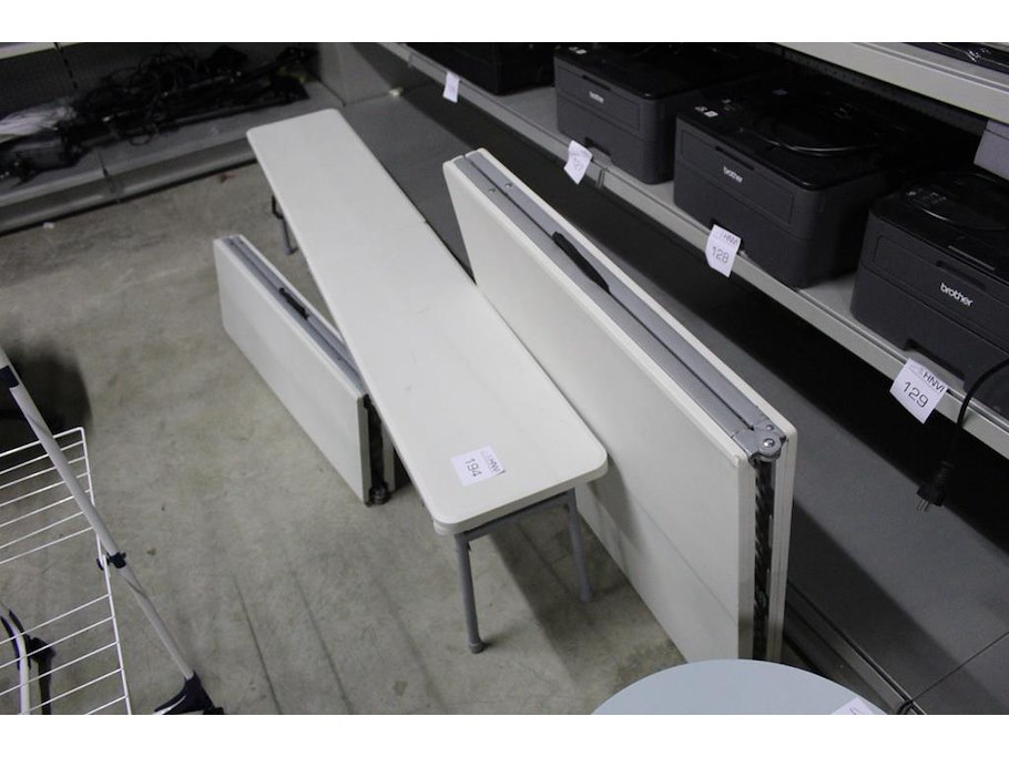 Inklapbare campingset bestaande uit tafel en twee bankjes. Totale breedte uitgeklapt 183 cm. Margeproduct