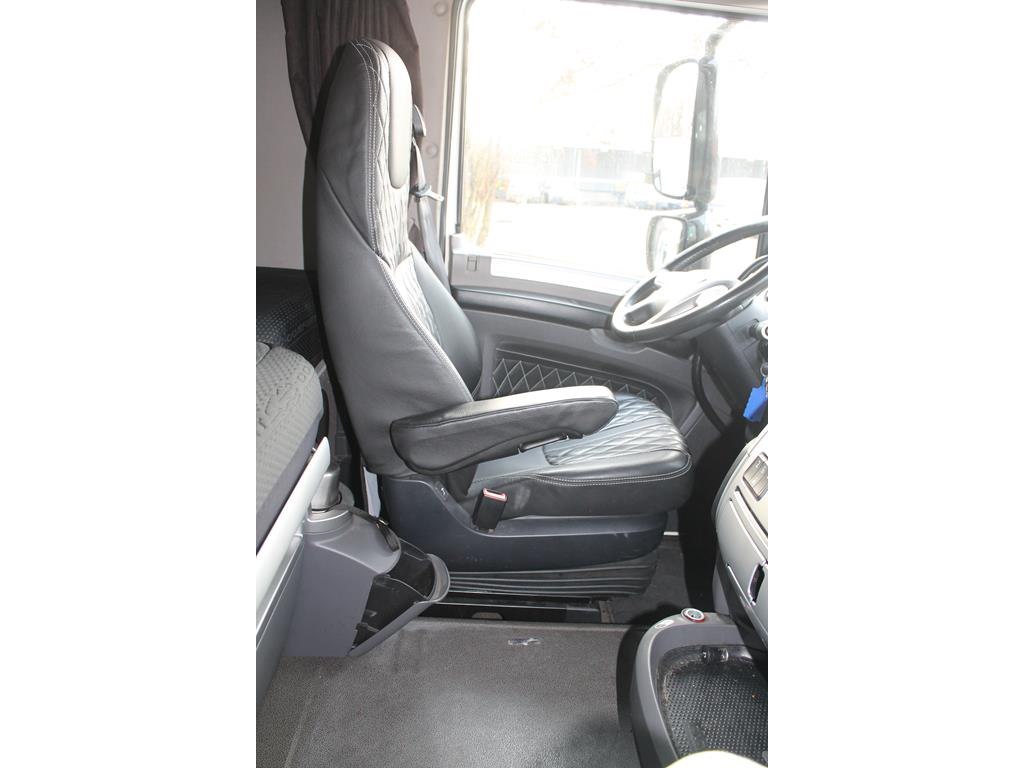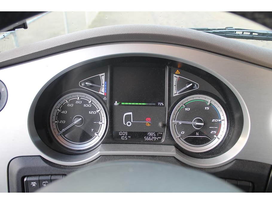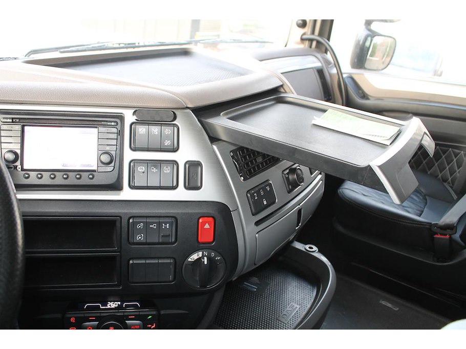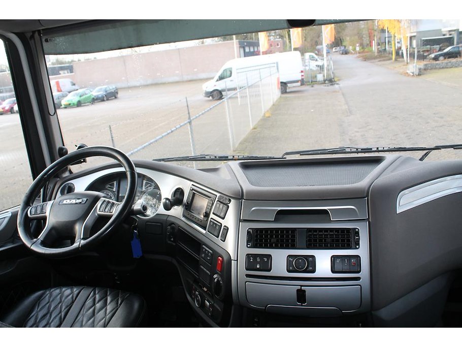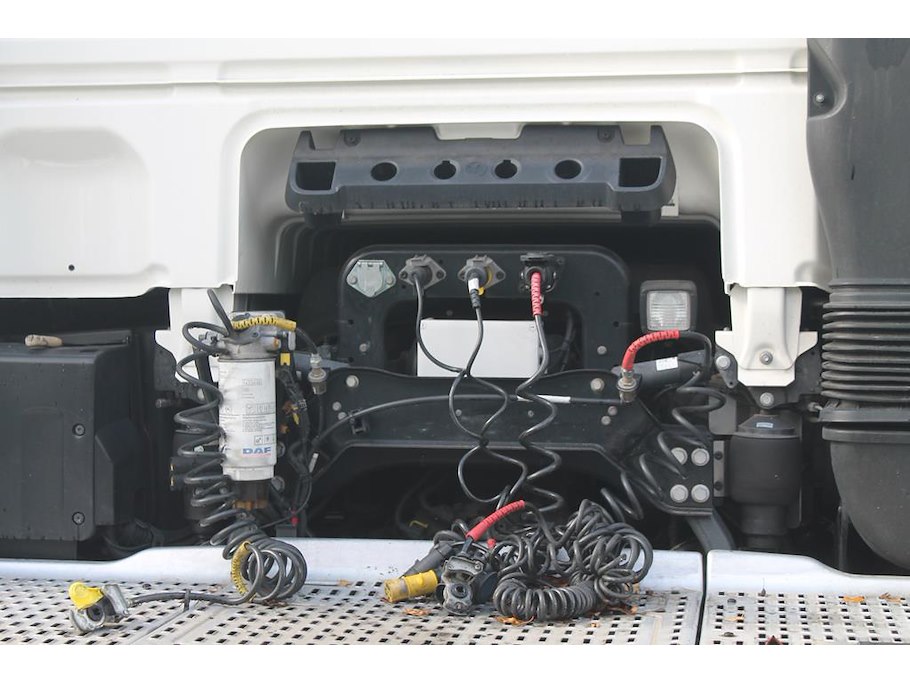 Opleggertrekker DAF XF 480 FT automaat type H4EN met kenteken 43-BLJ-8. Datum eerste toelating 22-10-2018. Vervaldatum APK en tachograaf 8-3-2026. Afgelezen kilometerstand 566.294. Milieuklasse EG 6C, Milieuklasse EG Goedkeuring zwaar 595/2009*2017/1374C. Voorzien van retarder, lederen bekleding, digitale tachograaf, SuperSpaceCab cabine, tweede bed en standkachel. Cilinderinhoud 12.902 cm3