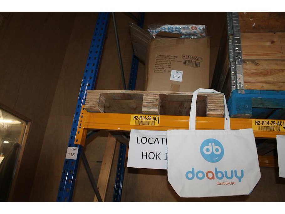 Katoenen draagtassen op pallet. ca. 300 stuks in 3 dozen.