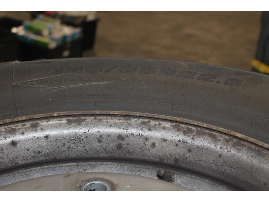 Zes vrachtwagen banden op velg w.o. maatvoering 385/65r22,5.