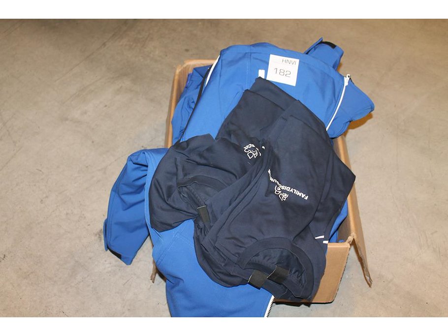 Bedrijfskleding met opdruk in doos w.o. jassen en shirts