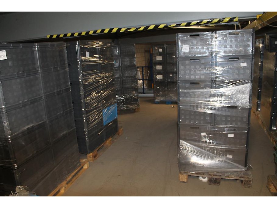 Combinatiekavel van 24 pallets met 24 /48 kunststof stapelbakken SUNWARE met afmeting 30/60 x 40 x 37 cm. Kavels F0188 t/m F0211
