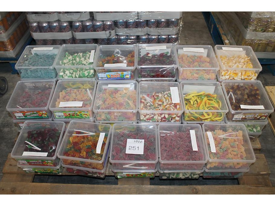 Snoepbakken sweetzone in grote diversiteit. ruim 50 kg emmers op pallet. tht voornamelijk 2026.
