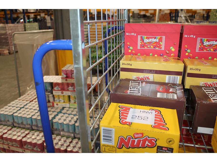 Zeven dozen snoepgoed w.o. NUTS, M&M, MARS, SNICKERS, BOUNTY, TWIX en SKITTLES. Totaal 197 stuks.