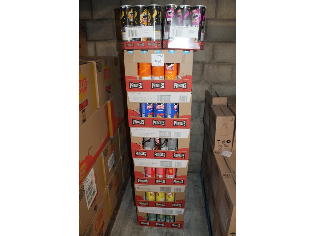 Acht verpakkingen pringles in 8 smaken. totaal 132 bussen. tht 2026.