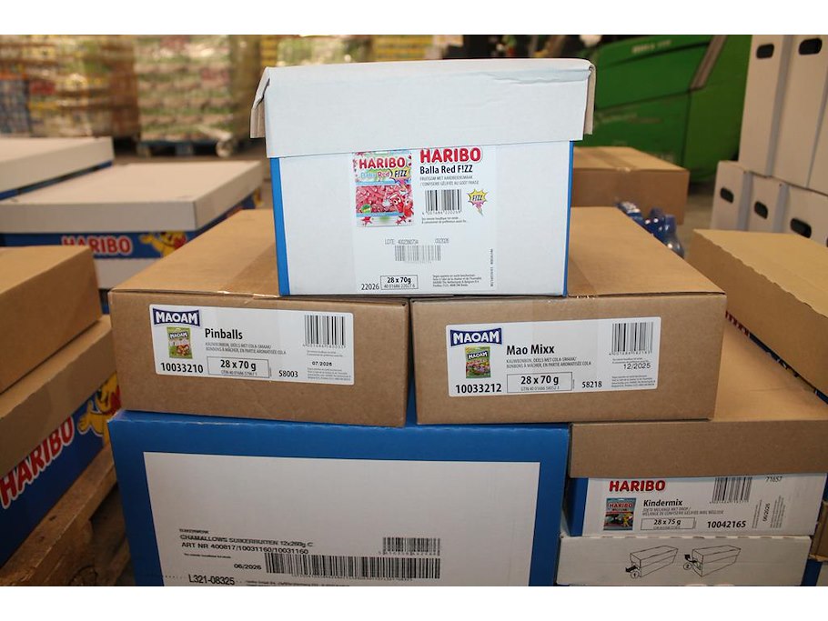 Acht omdozen snoepgoed HARIBO en MAOAM w.o. Starmix, Balla Red, Suikerruiten en Tangfastics. 188 zakjes.