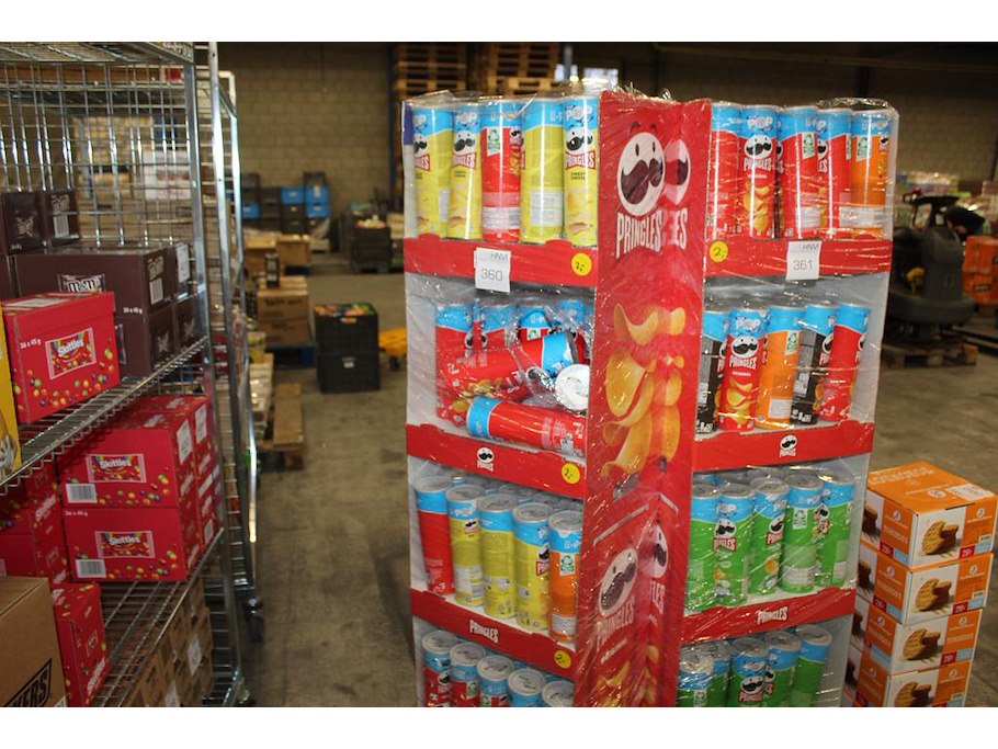 Pringles display gevuld met diverse soorten pringles. ruim 60 bussen.