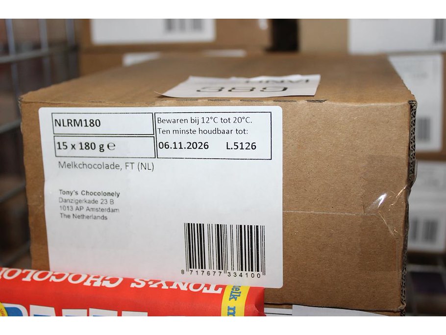 Doos tony's chocolonely. 15 stuks melkchocolade.