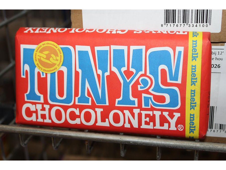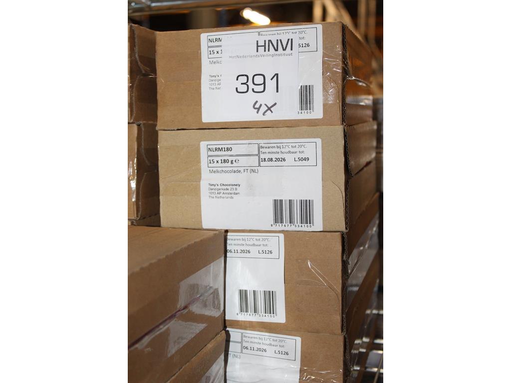 Vier dozen tony's chocolonely. 60 stuks melkchocolade.
