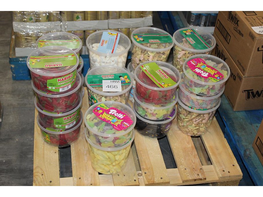 24 emmers HARIBO en TROLLI snoepgoed w.o. witte muizen, bananen en giant strawbs.