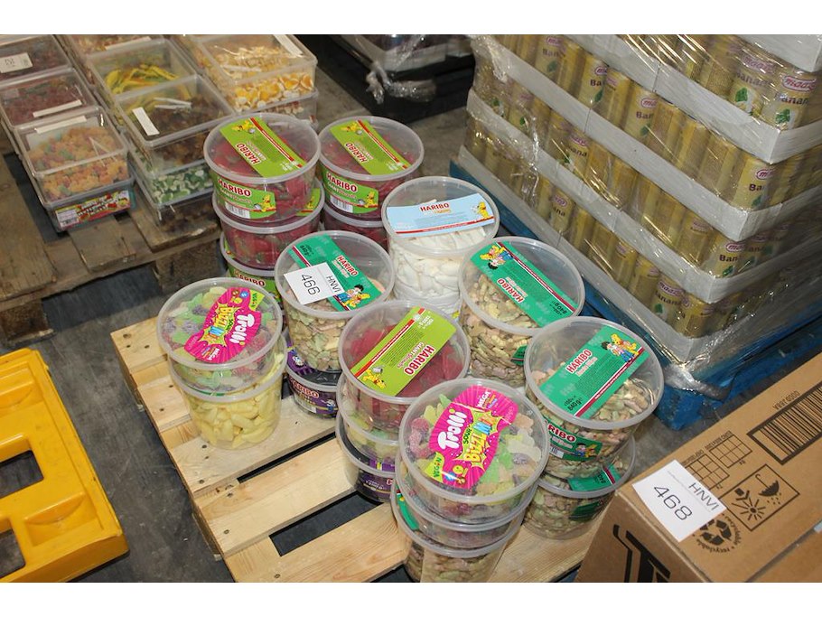 24 emmers haribo en trolli snoepgoed w.o. witte muizen, bananen en giant strawbs.