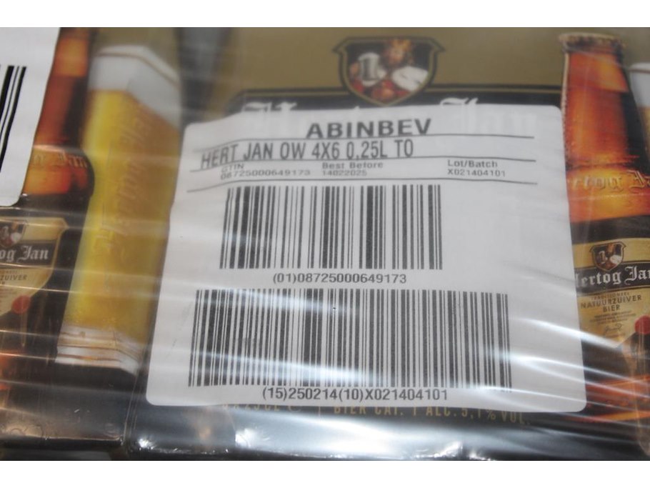 Hertog jan bier op pallet. 364 sixpacks 25 cl. totaal 2184 flessen. tht 2-2025.
