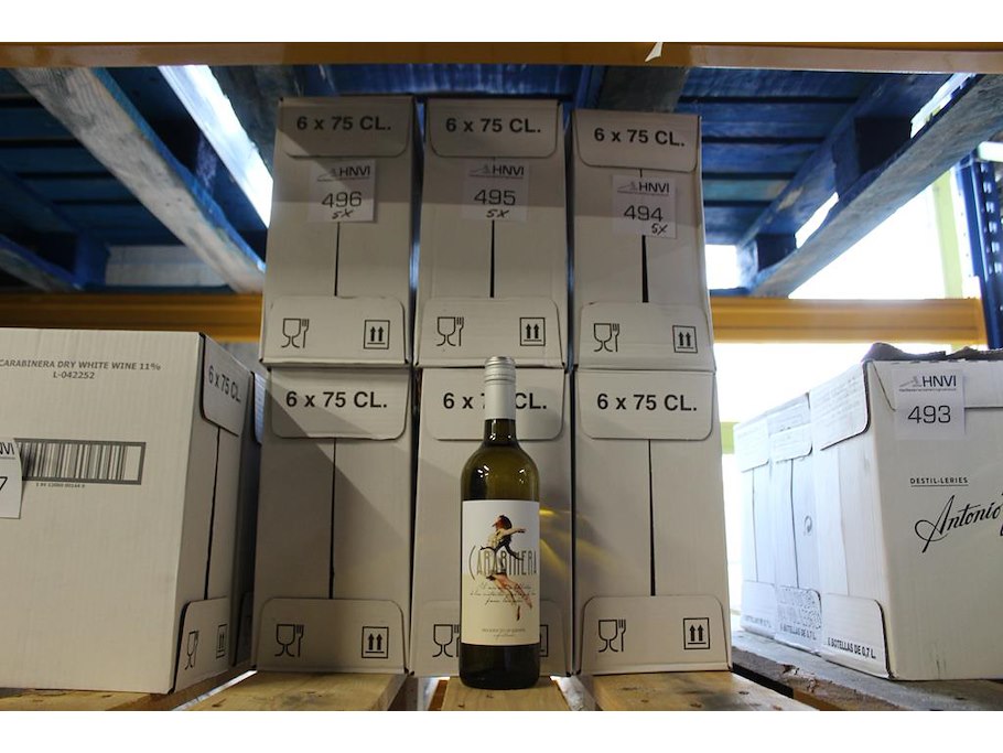 Vijf dozen droge witte wijn carabinera. 30 flessen.