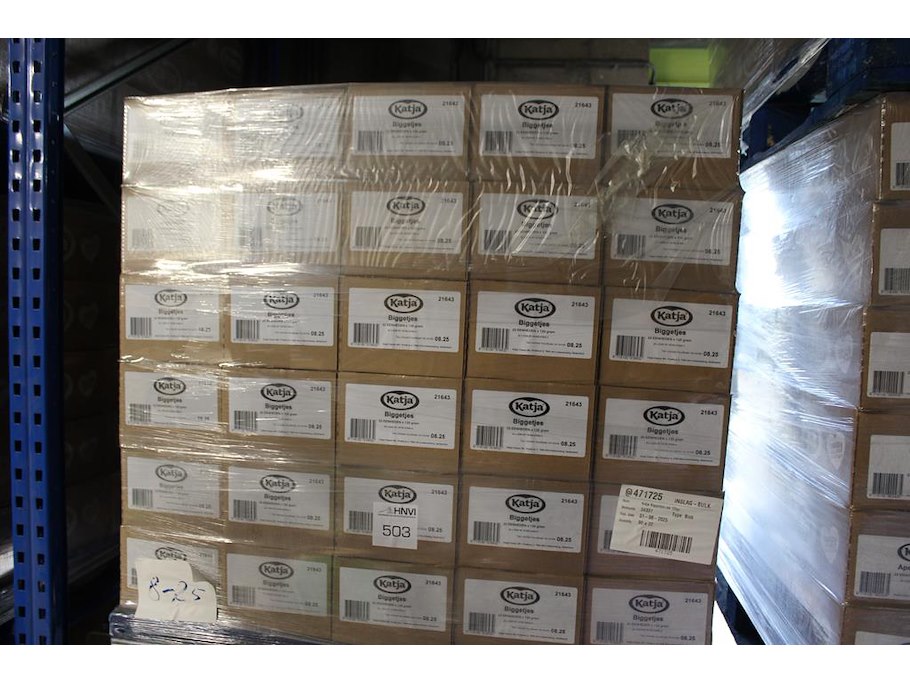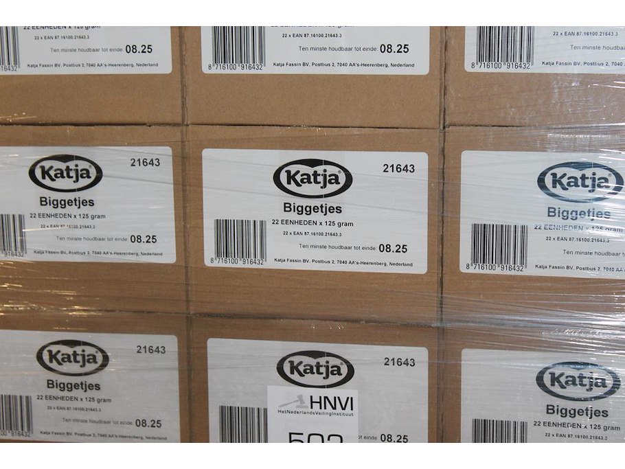 Katja biggetjes op pallet. 90 dozen a 22 zakjes. tht 8-25.