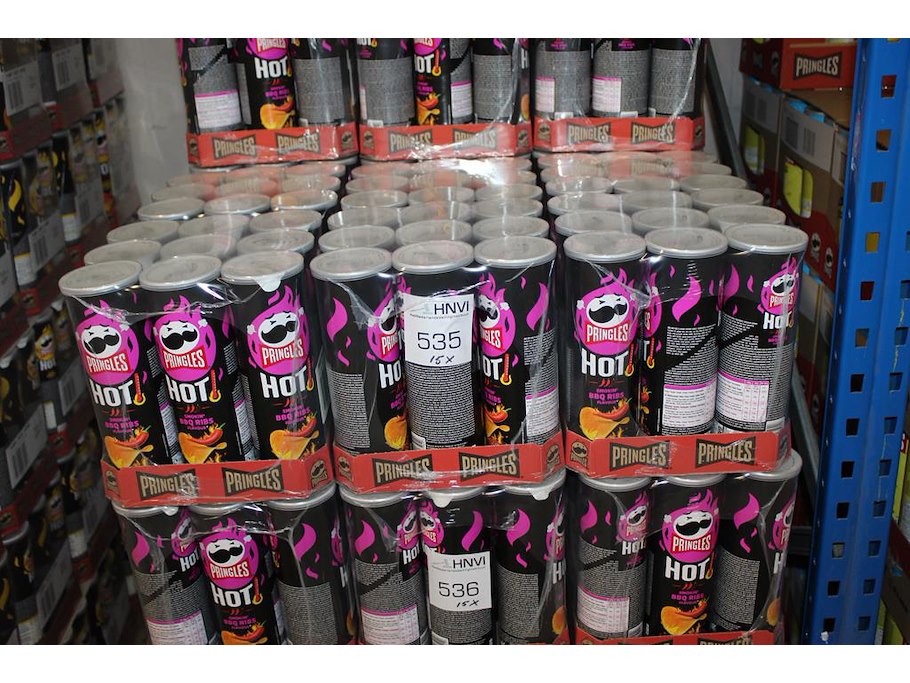 Vijftien dozen pringles hot bbq. 135 bussen.