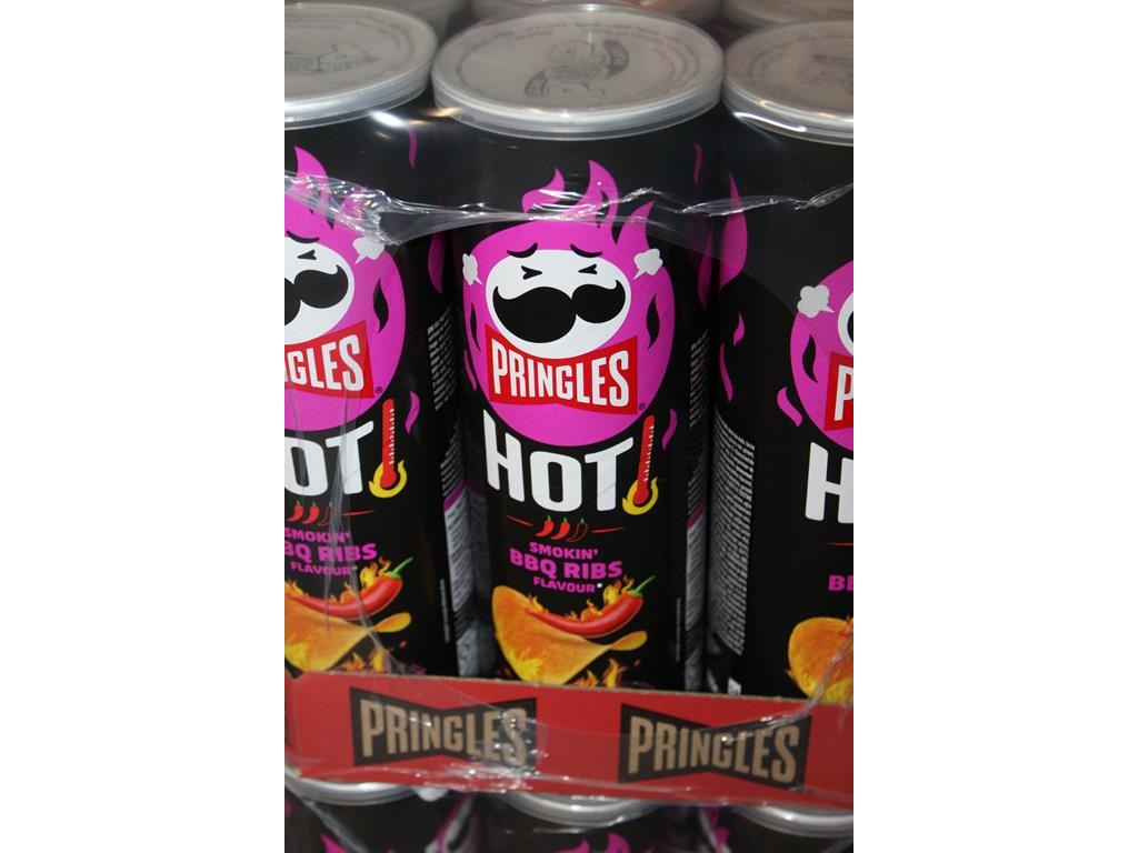 Vijftien dozen PRINGLES Hot BBQ. 135 bussen.