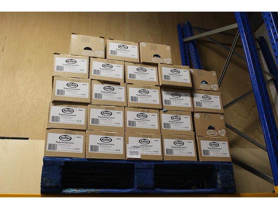 Katja regenboog geluk op pallet. 65 dozen a 22 zakjes. tht 9-25.