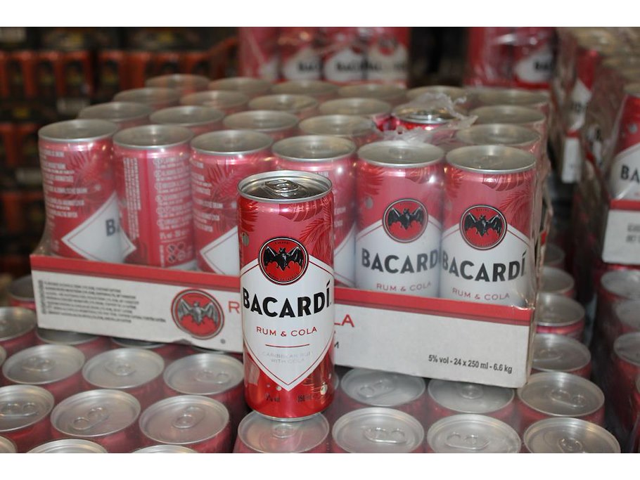 24 blikken bacardi cola 0,25cl. tht 11-2026. bod inclusief statiegeldwaarde van 3,60 euro.