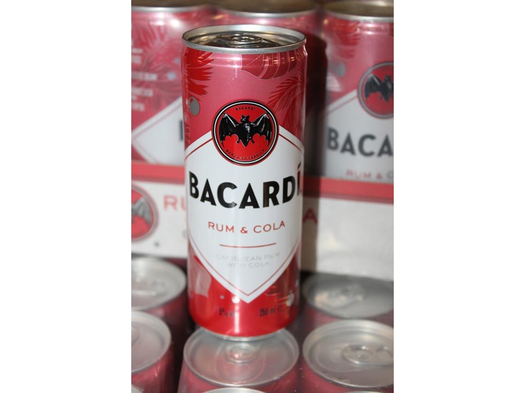 24 blikken bacardi cola 0,25cl. tht 11-2026. bod inclusief statiegeldwaarde van 3,60 euro.