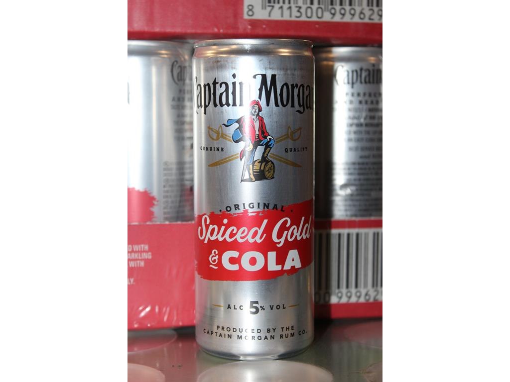 2 x 12 blikken captain morgan spiced gold & cola 0,25cl. tht 11-2025. bod inclusief statiegeldwaarde van 3,...