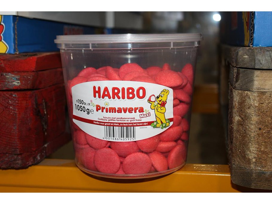 Schuimaardbeien haribo 14 overdozen met 6 emmers a 1050 g. tht 7/8 2026.