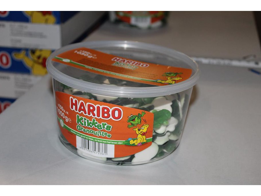 Kikkers HARIBO in 8 overdozen met 6 emmers a 150 stuks. THT 7-2026.
