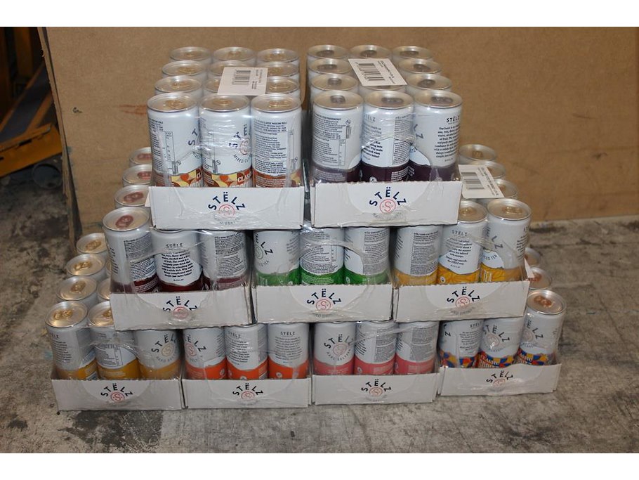 Stelz hard seltzern in negen smaken 9 x 12 blikken voornamelijk tht 2026 en 2027. bod is inclusief 16,20 e...