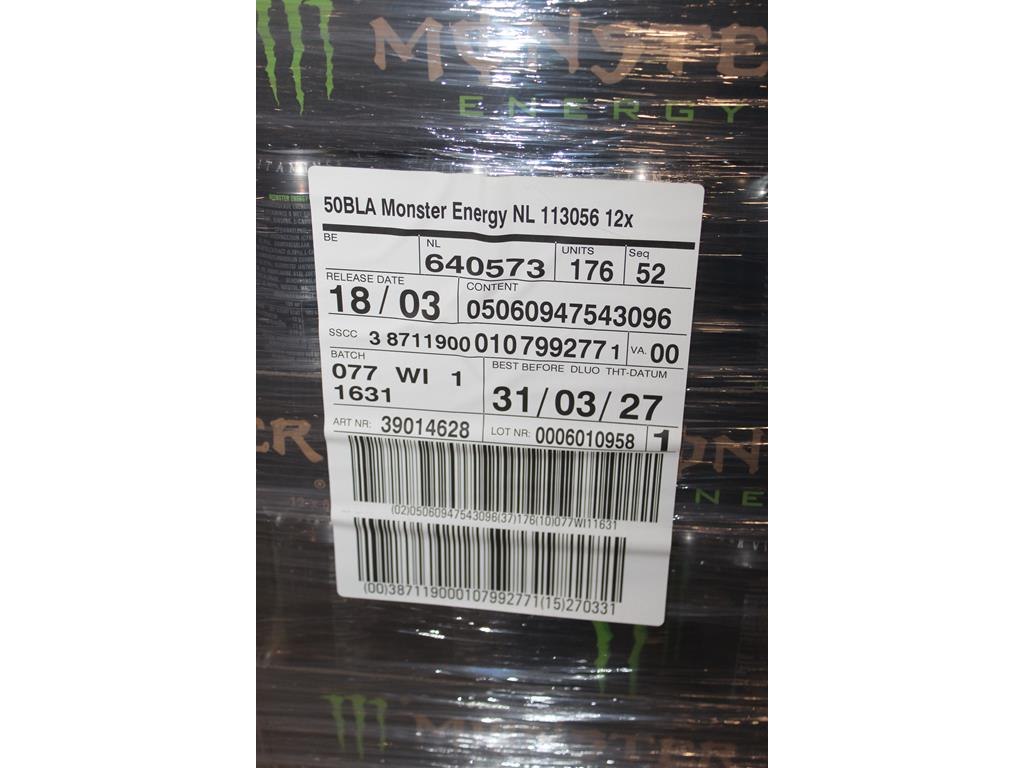 Energiedrank monster. 176 trays a 12 x 0,5l. 2112 blikken. tht 3-27. bod is inclusief 316,80 euro statiege...